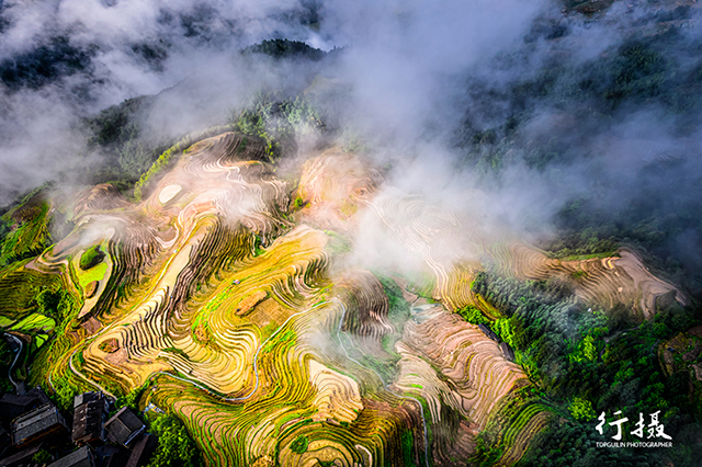 青山环绕、悠然宁静,田园阡陌纵横,小桥流水悠悠。